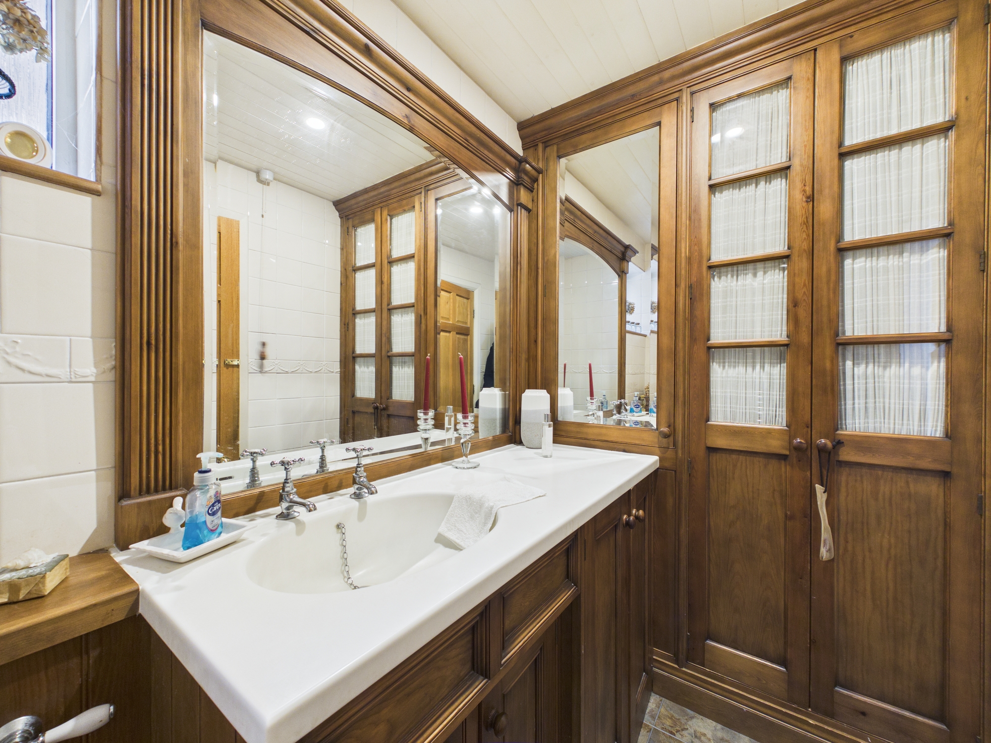 To the first floor, the property continues to impress with three generously sized double bedrooms and a well-proportioned single bedroom, offering flexible accommodation for families, guests, or those working from home. The family bathroom is fitted with a large walk-in shower and a built-in vanity unit providing useful storage.